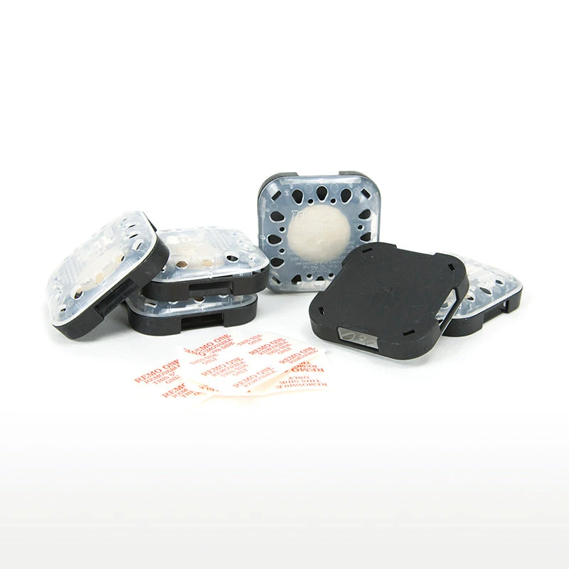 - Adhesive strips keeps bait in place on walls or under cabinets